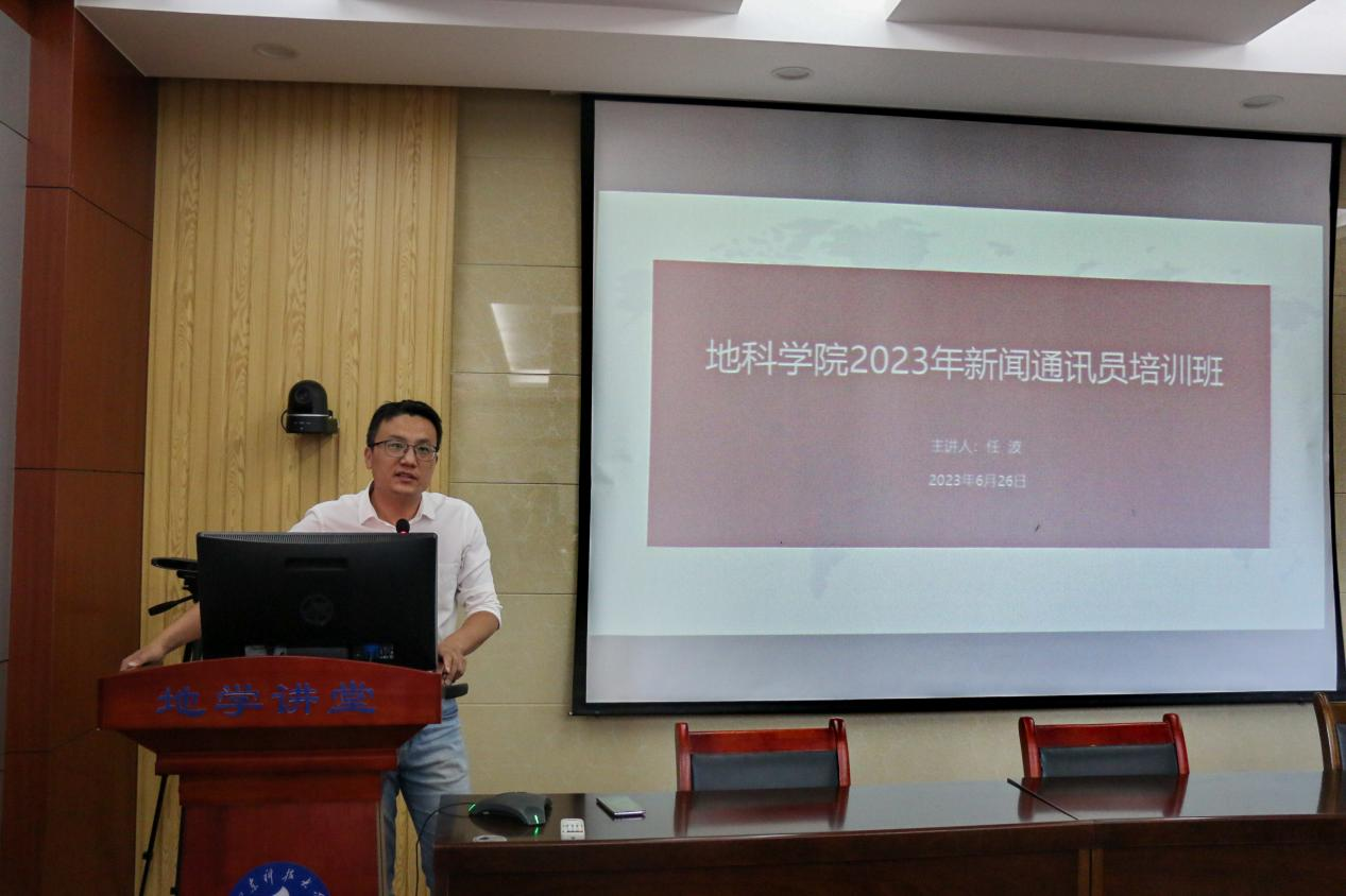 近日,地科学院2023年新闻通讯员培训班开班。本次新闻通讯员培训班邀请校宣传部任波、信永华、韩洪烁担任主讲人,全院各党支部、各部门的40余名负责人和通讯员参加。