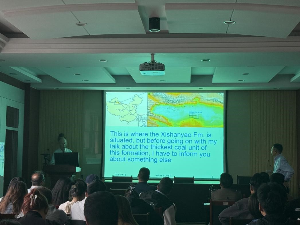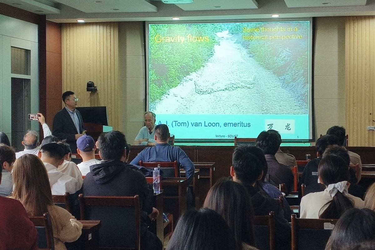 Van Loon教授作了题为“重力流——从历史视角出发的一些思考”和“侏罗系西山窑组中厚层(135米)的煤层单元是如何形成的”两场学术报告。首先,他重点介绍了重力流的历史认知与研究背景,列举了陆地上的重力流案例,指出了水下重力流分类体系的局限性,解析了4种水下重力流,梳理了当前重力流研究的现状与面临的挑战;他结合自身经历,以重力流研究发展阶段为例,回顾了地质学科从“描述性科学”向“真正科学”关键转型。然后,围绕“超百米厚煤层是如何形成的”这一议题,Van Loon教授以超百米厚煤层形成机理为例,提出当前的地质科学研究和人才培养过程中,存在研究导向偏差、教育模式局限两个主要问题,认为现今的地质学议题选择与野外工作重视度发生显著变化,需要警惕忽视野外地质基础研究的倾向,呼吁大家重视实地考察在地质学研究中的重要作用。