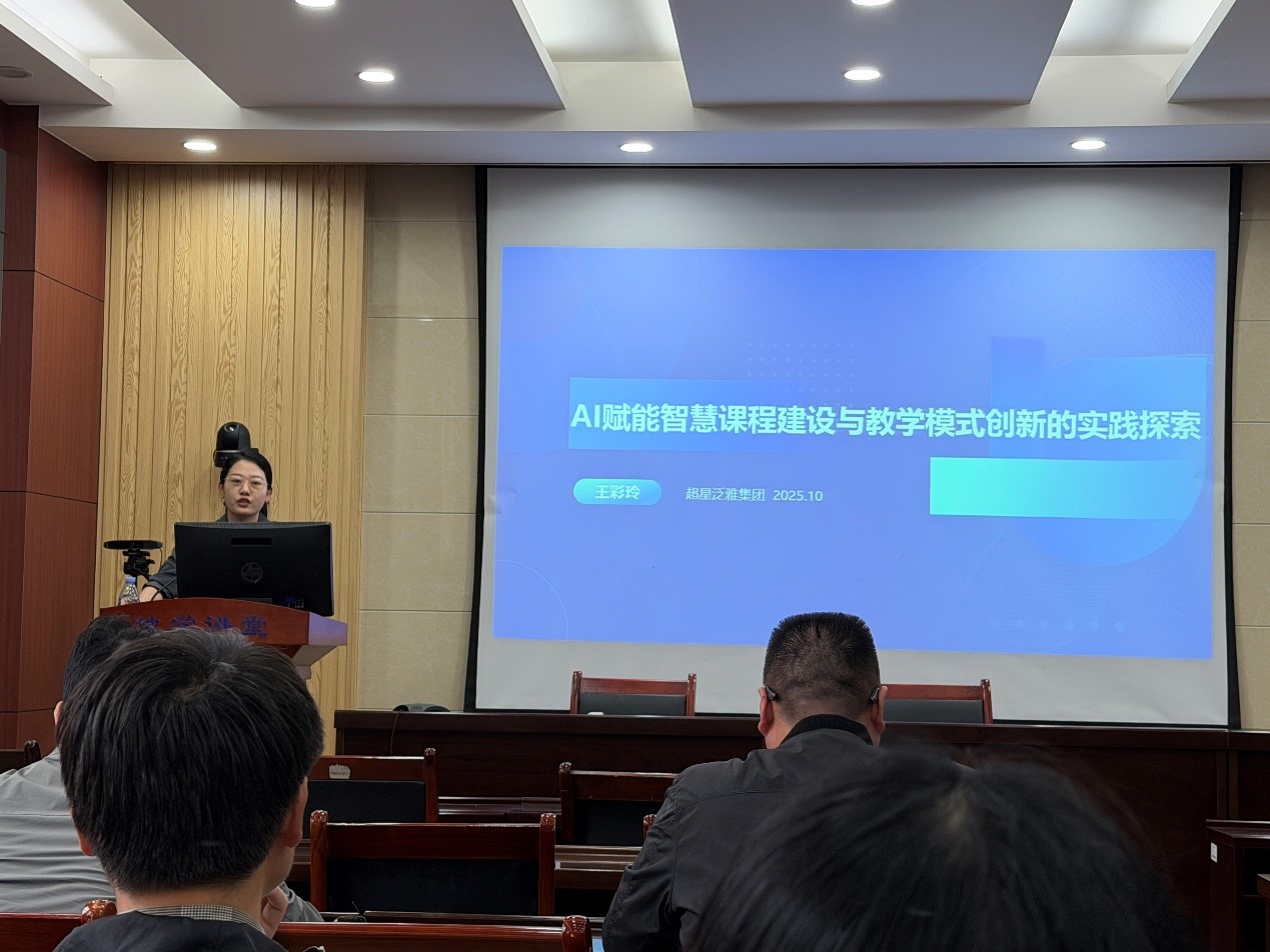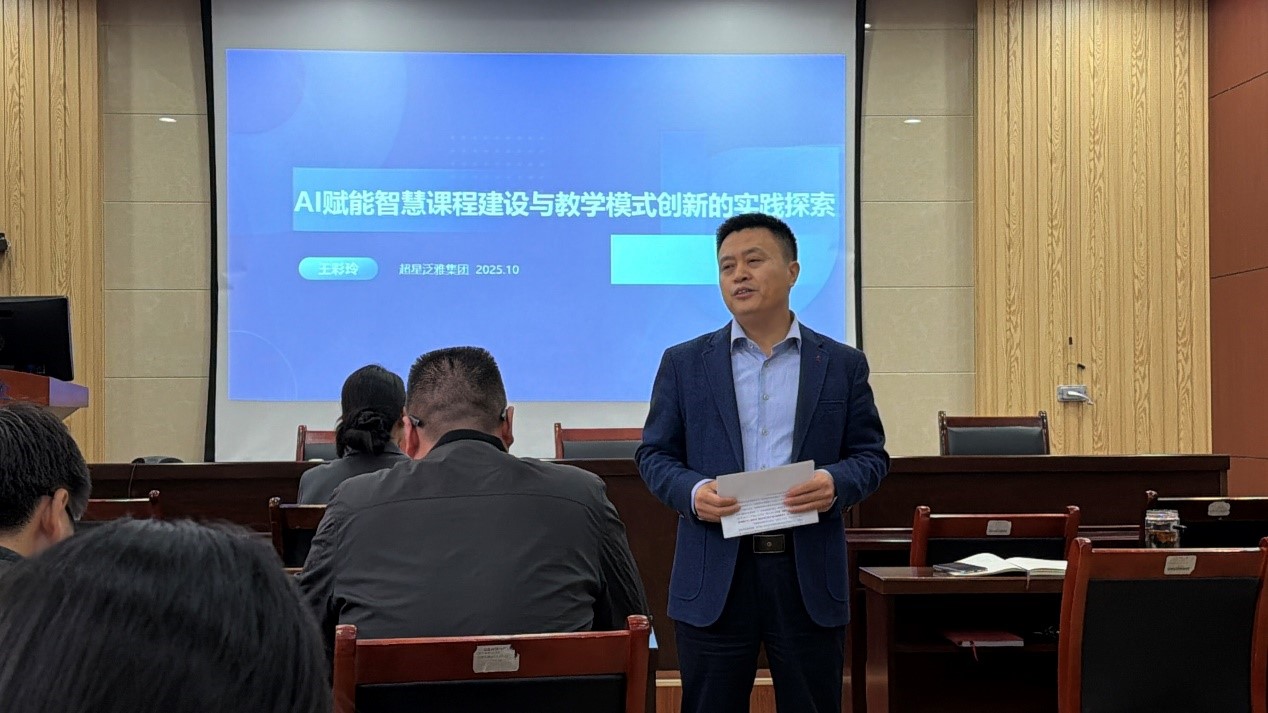 为深入推进教育数字化转型,提升课程建设质量,提高我院教师数字化教学素养与数智化技术应用能力,近日,学院邀请超星集团王彩玲经理为学院教师进行了题为“AI赋能智慧课程建设与教学模式创新的实践探索”的培训。会议由教学副院长尹会永主持。