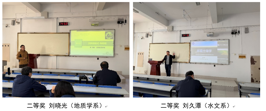 比赛过程中,参赛教师围绕各自专业课程,结合现代教学理念与信息技术手段,进行了课堂展示。评委们从教学内容、教学方法、教学效果、教学创新、课程思政等多个维度对选手进行综合评分。经过激烈角逐,地质学系张凯棣、矿产系张之辉荣获一等奖,地质学系刘晓光、水文系刘久潭获得二等奖。