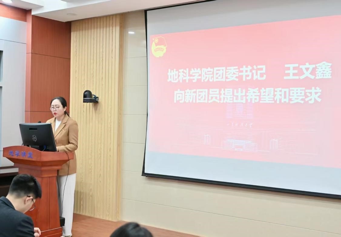 王文鑫向全体新团员和青马班新学员提出三点希望:要牢记团员身份,严格遵守团的章程,履行团员义务,增强“四个意识”、坚定“四个自信”、做到“两个维护”;要立足地学专业特色,在学习科研中当先锋、在社会实践中做闯将,将野外勘查的吃苦精神、地质研究的严谨态度融入日常,用地学知识破解资源勘探、生态保护等领域的难题,为祖国发展注入青春动能;更要以“堪当民族复兴大任的时代新人”为目标,在青春的赛道上奋力奔跑,让青春在地质报国的实践中绽放绚丽之花。