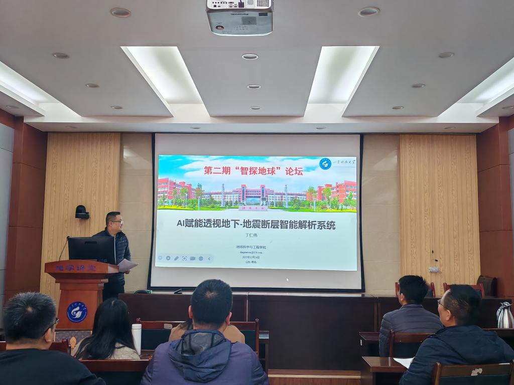 本期活动采用了学术报告会的形式。支部杨思通、支鹏遥、宋翠玉、崔岩、李建平、王德营、张金伟和丁仁伟等八位老师,结合自己的研究方向,依次登台,分别以“采煤工作面内隐伏构造槽波地震数据智能成像方法研究”、“胶州湾地质构造特征的地球物理认识”、“天文节拍与湖面舞动:黄岗盆地的盐沉积印记”、“机器学习在录井岩性识别中的应用”、“CSAMT法在山东李楼煤业某采区富水区勘探中的应用研究”、“基于生成对抗网络的弱信号增强方法”、“沁水盆地煤层气地震储层反演与有利目标预测”和“AI赋能透视地下-地震断层智能解析系统”为题,围绕科学问题提出、研究思路构建、技术方法创新及核心结论提炼等方面展开全方位、深层次分享,展现了地球物理领域的前沿探索与实践成果。