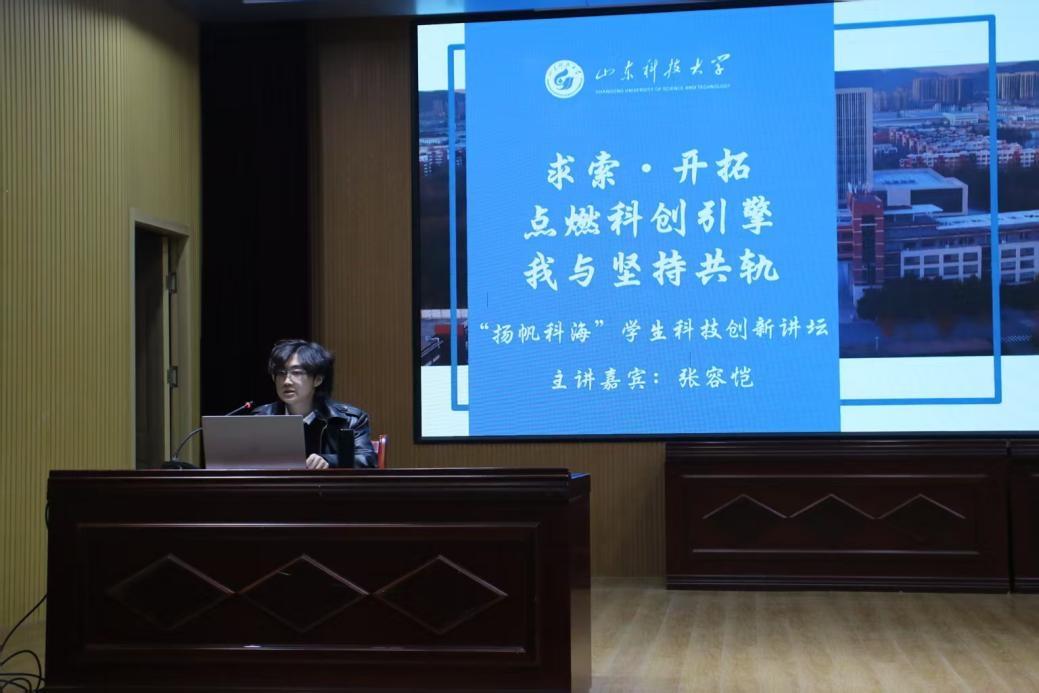 12月16日下午,地科学院第二期“扬帆起航”学生科技创新论坛在J6-434报告厅开讲。地质工程2022-1班学生、已推免本校硕博连读学生张容恺,以“科创求索成长赋能”为主题,为百余名在场学生讲解了一场兼具经验分享与方法指导的实践课。