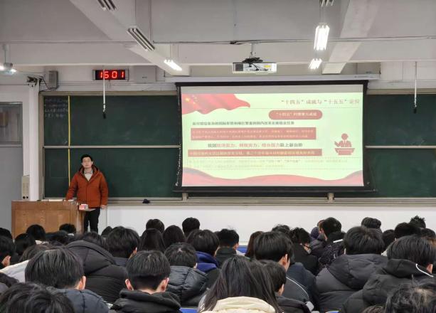 宣讲中,辅导员立足各年级、各班级实际情况,精准把握学生思想动态与成长需求,围绕党的二十届四中全会提出的新思想、新论断、新要求,将宏大叙事与微观视角相结合,既系统阐释全会精神的核心要义与实践要求,又紧密联系国家发展宏伟蓝图、高等教育立德树人根本使命,融合学科特色与行业发展,用学生听得懂、能领会、可践行的语言,娓娓道来全会精神的深刻内涵。