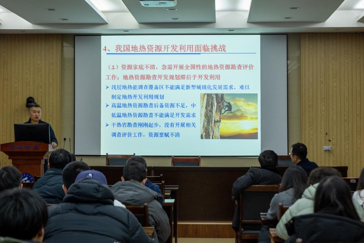 1月15日,地球科学与工程学院邀请何雨江研究员做客学校2025年第4期“名家讲坛”。何雨江在J6-530报告厅作了题为“清洁能源开发利用战略——地热能”学术报告。报告会由院长常象春主持,学院部分教师及研究生参加。