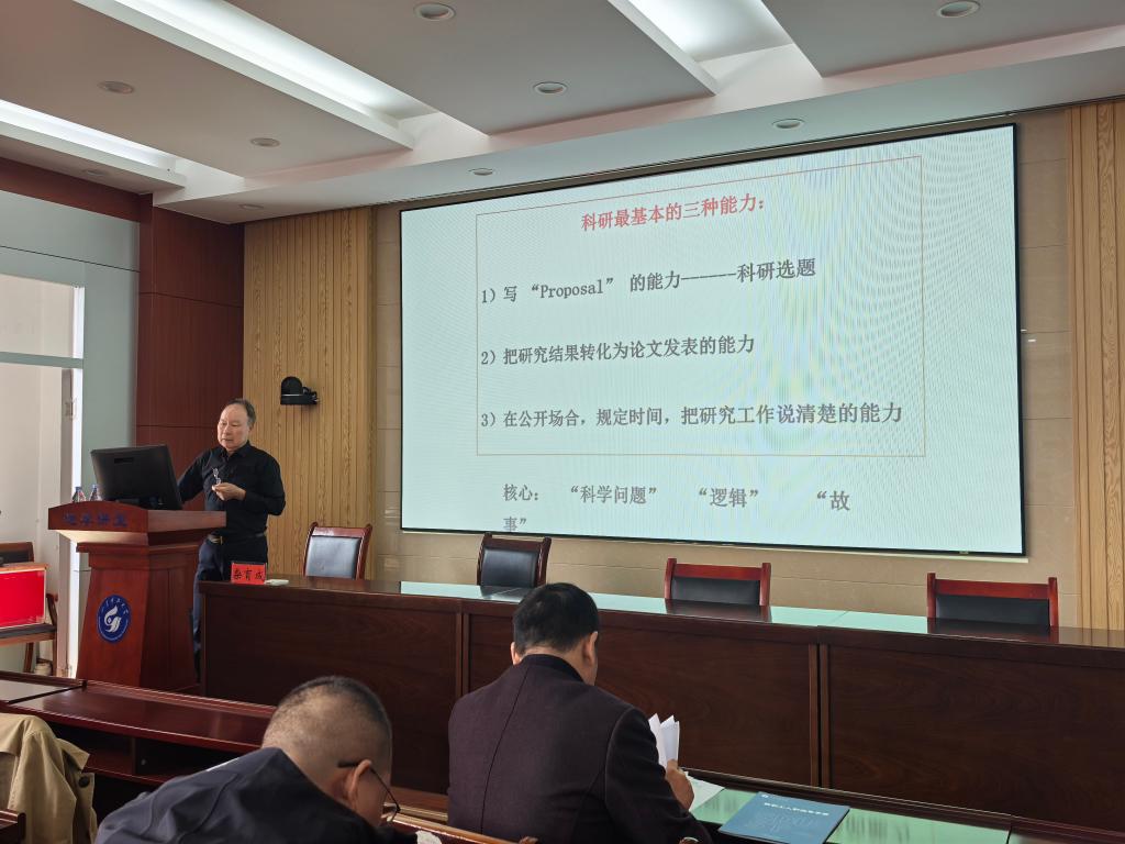 报告中,柴育成教授以“科研选题及其论证”为主题,从“科研选题存在的共性问题”、“科研选题的核心和灵魂—科学问题”和“如何写‘Proposal’”等三个方面,分析了高水平论文和研究课题如何选题、撰写和表述。他表示,科学问题和科学突破源于灵感和思想,一名科研人员要学会奇思妙想,用辩证思维探索未知世界。