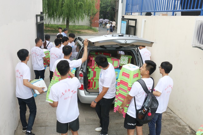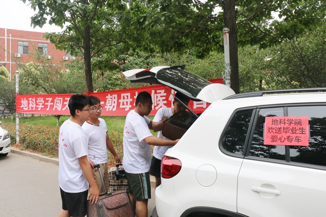 在宿舍,毕业生党员帮着离校的同学整理物品,办理离校手续,接过他们手中的行李,送到宿舍楼下学院专门准备的“欢送毕业生爱心专用车”上。“爱心服务车”是学院为了方便毕业生离校而专门安排的,在离别之际送上学院对同学们的关爱与祝福。