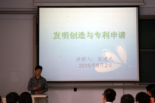 为普及专利基础知识,提高同学们的自主创新意识,6月2日下午,地科学院科技部特举办了发明创造与专利申请讲座,讲座邀请地质工程2012级1班的张建元同学主讲,学院各年级科技创新学生代表参加了讲座。