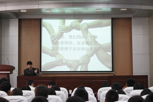 首先,各部门负责人通过幻灯片的形式为大家系统、详细的介绍了各个部门的工作内容、制度和内涵建设等方面的情况,总结了上学年的工作,同时对2012级的新干事提出了新的期待和要求。之后,2012级新干事代表、部长代表、自律会主任分别发言,表示一定要在锻炼发展自我的同时尽自己所能为自律会的发展做出贡献,为同学们服务。赵洪刚老师从立足本职、学会坚持、严格自律、共同合作四个方面与全体自律会成员做了交流。最后,自律会全体成员共同宣读誓言:遵守自律章程,珍惜自律荣誉,维护自律形象,坚持虎气、正气、生气,牢记自律、自立、自强。