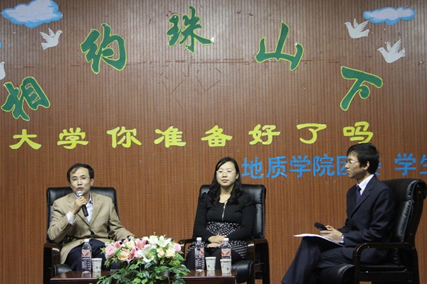 交流会上,常象春老师首先结合学院知名校友介绍了地质学院在师资水平、人才培养方面的概况,着重强调了地质学科建设和与全国同专业高校相比所处的水平;李淑娜老师给同学们讲解了人际交往的技巧以及如何建立良好的人际关系,如何经营爱情、友谊和调节学习生活,让同学们正确认识大学中的人际交往。紧接着,常老师结合具体实例强调了地质工作者要有健康的体魄、求真务实的工作态度、勇于实践的工作热情。最后,两位老师与同学们进行现场互动,老师们详细解答了同学们在学习和生活等方面的问题。